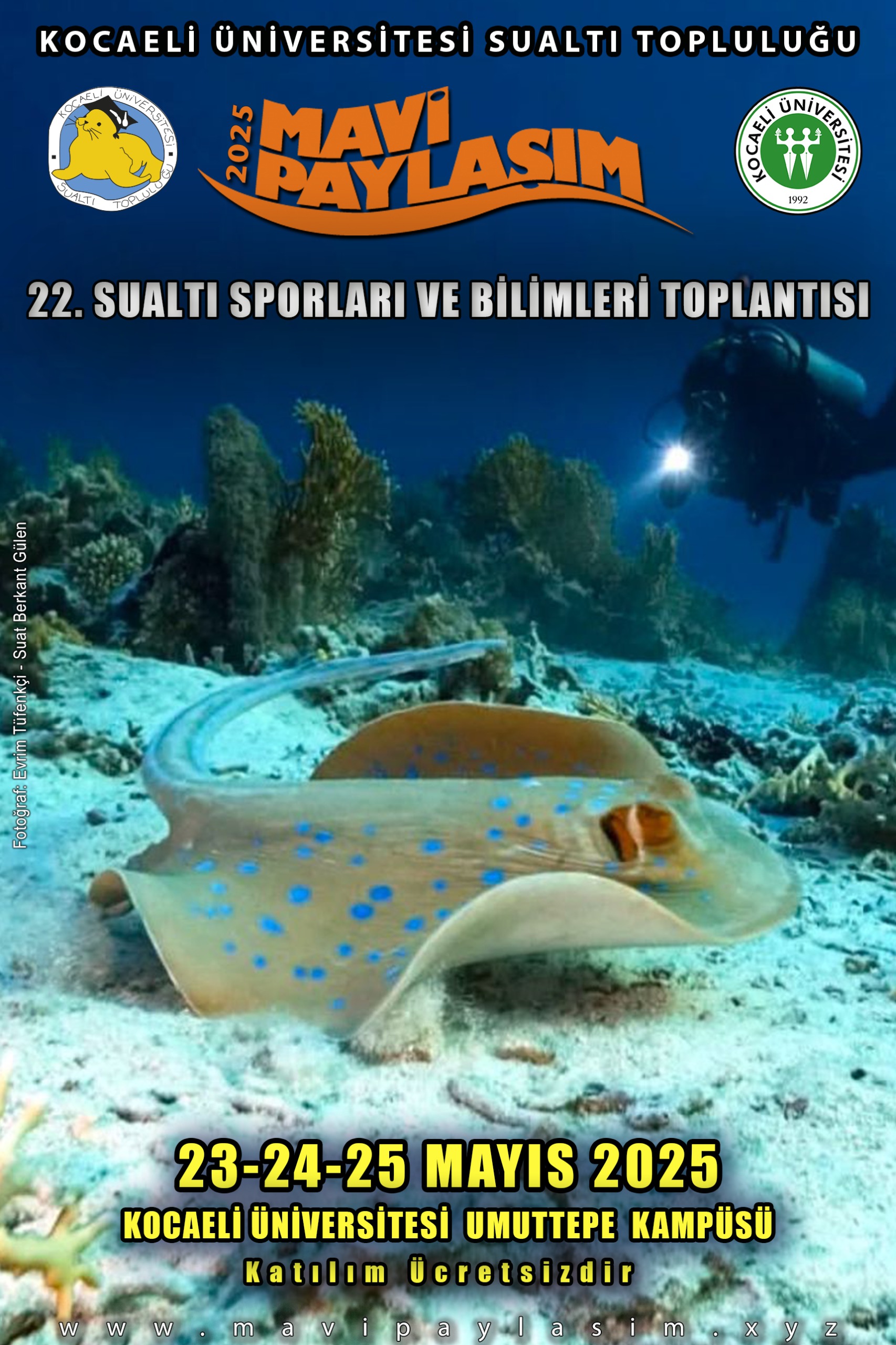 Kocaeli Üniversitesi Sualtı Topluluğu olarak bu yıl yirmi ikincisini düzenleyeceğimiz “Mavi Paylaşım’2025 Sualtı Sporları ve Bilimleri Toplantısı” 23-24-25 Mayıs 2025 tarihlerinde düzenlenecektir.